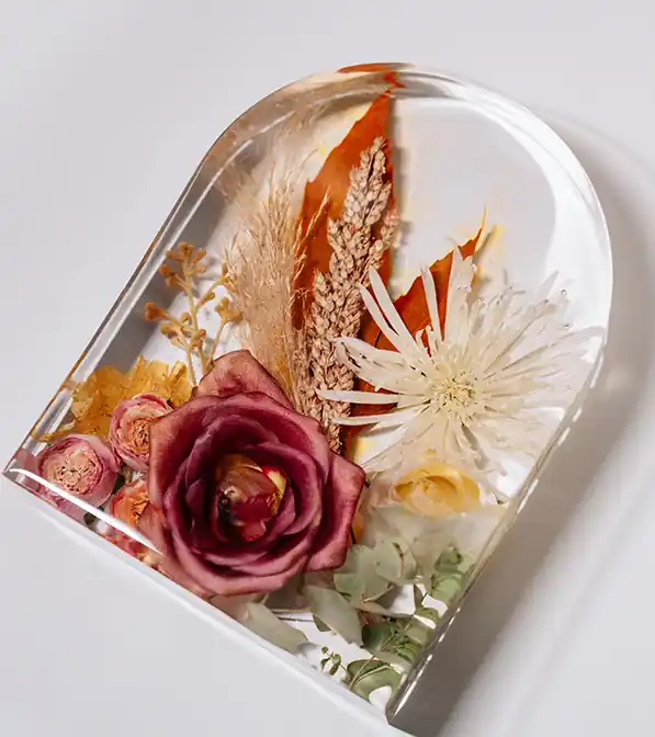 É a transformação das flores em peças artísticas exclusivas, cuidadosamente preservadas, mantendo a beleza e as memórias do seu casamento vivas para sempre.